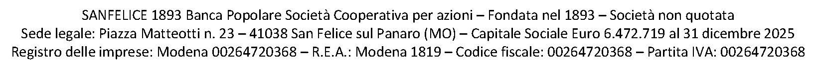 La documentazione sarà disponibile presso la sede legale della Banca in San Felice sul Panaro (MO), Piazza Matteotti n. 23, nonché sul sito internet www.sanfelice1893.it/investor-relations/assemblea-dei-soci-2026, nei quindici giorni antecedenti la data di prima convocazione.
