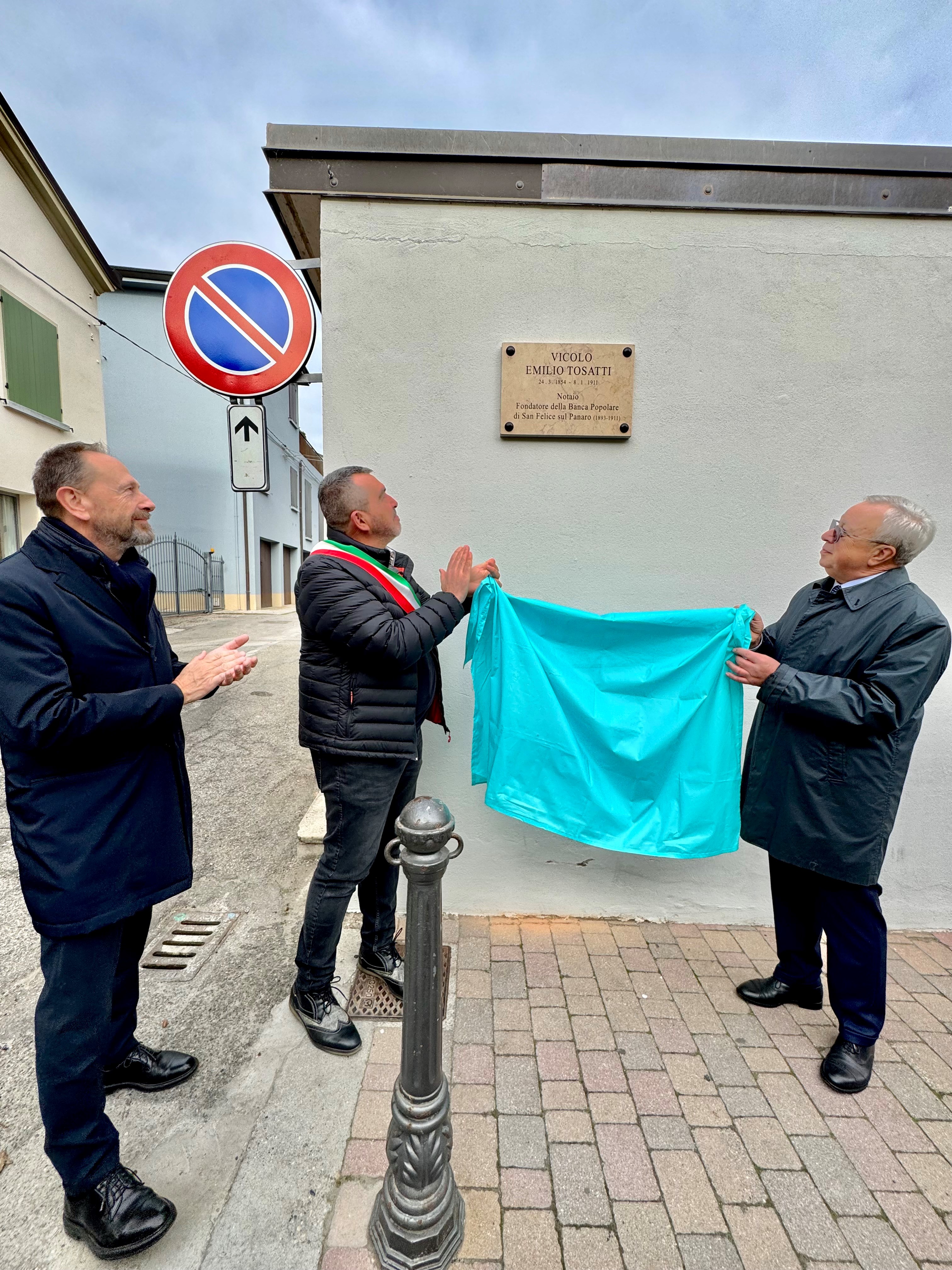 Giovedì 13 novembre 2025 è stato inaugurato a San Felice sul Panaro un nuovo vicolo intitolato a Emilio Tosatti, fondatore della SANFELICE 1893 Banca Popolare.